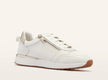 Brooklyn in White/Gold is engineered for everyday movement with premium comfort and durability. Dual-density soles provide stability, a sawtooth rubber tread enhances grip, and a triple-layered cushion system absorbs impact. Luxe leather with metallic gold accents adds a refined edge, balancing function with effortless style